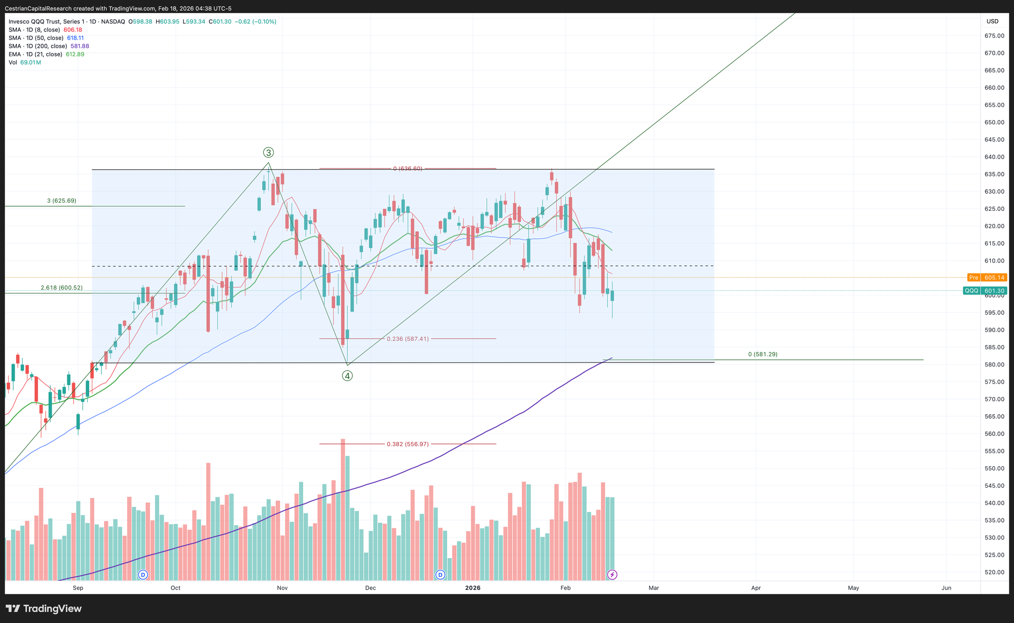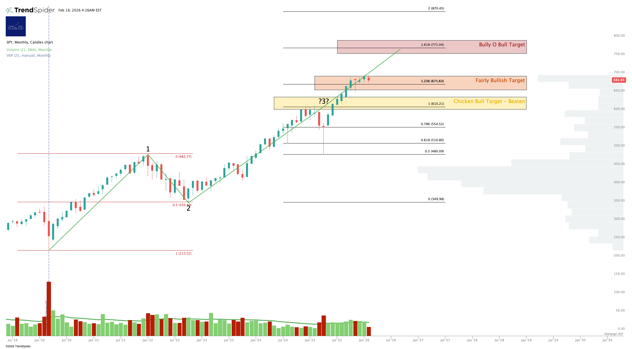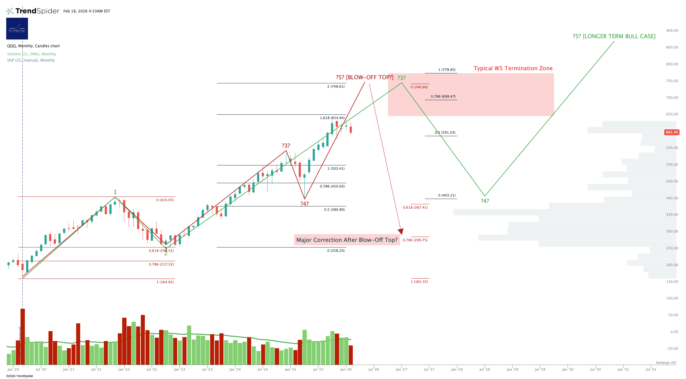 The volume x price up here is marked. That is bearish until proven otherwise I would say. I think the QQQ will hit $740-750ish in time but I would not be at all surprised to see a correction into late Q1 / early Q2 as per last year - reason - that vol x price bump. Happy to be wrong.