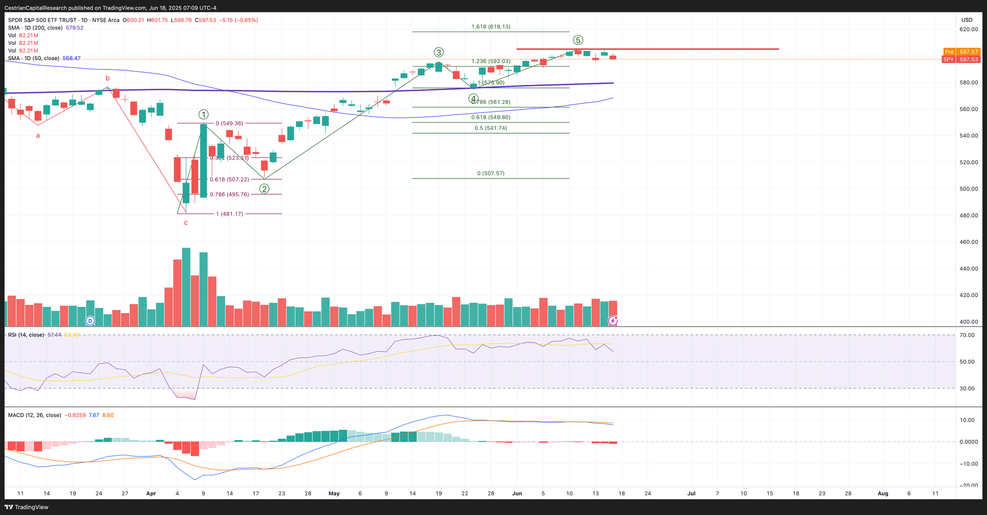 It is not blindingly obvious to me from the key charts at the moment what the next big move is in markets. I think if we continue to see Goldilocks economics - low inflation and growth holding up and jobs holding up - then stocks can move upwards rather powerfully. If we see Iran suddenly fold then the same is true of equity indices I think. I am not sure what it would take from Iran to actually materially damage equities at present, since there has been plenty of what now seems to be called “kinetic war” (sounds nice, doesn't sound like it involves death or anything unpleasant like that) and markets have shrugged it off. So I don’t think there is a major bearish external stimulus about to it. I do think that a lot of charts look short-term topped out even though my firm opinion is that we see new all-time-highs in equity indices during 2025.