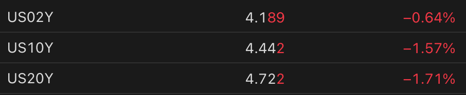 Well, as discussed and disclosed in our Inner Circle service, I have been accumulating US government bond ETFs for a little while now and this may be beginning to pay off. I suspect the current cost-down initiative in DC and beyond has at least one intended audience, being the bond market, the better to cram down those stubbornly high yields. Today yields are falling across the spectrum.