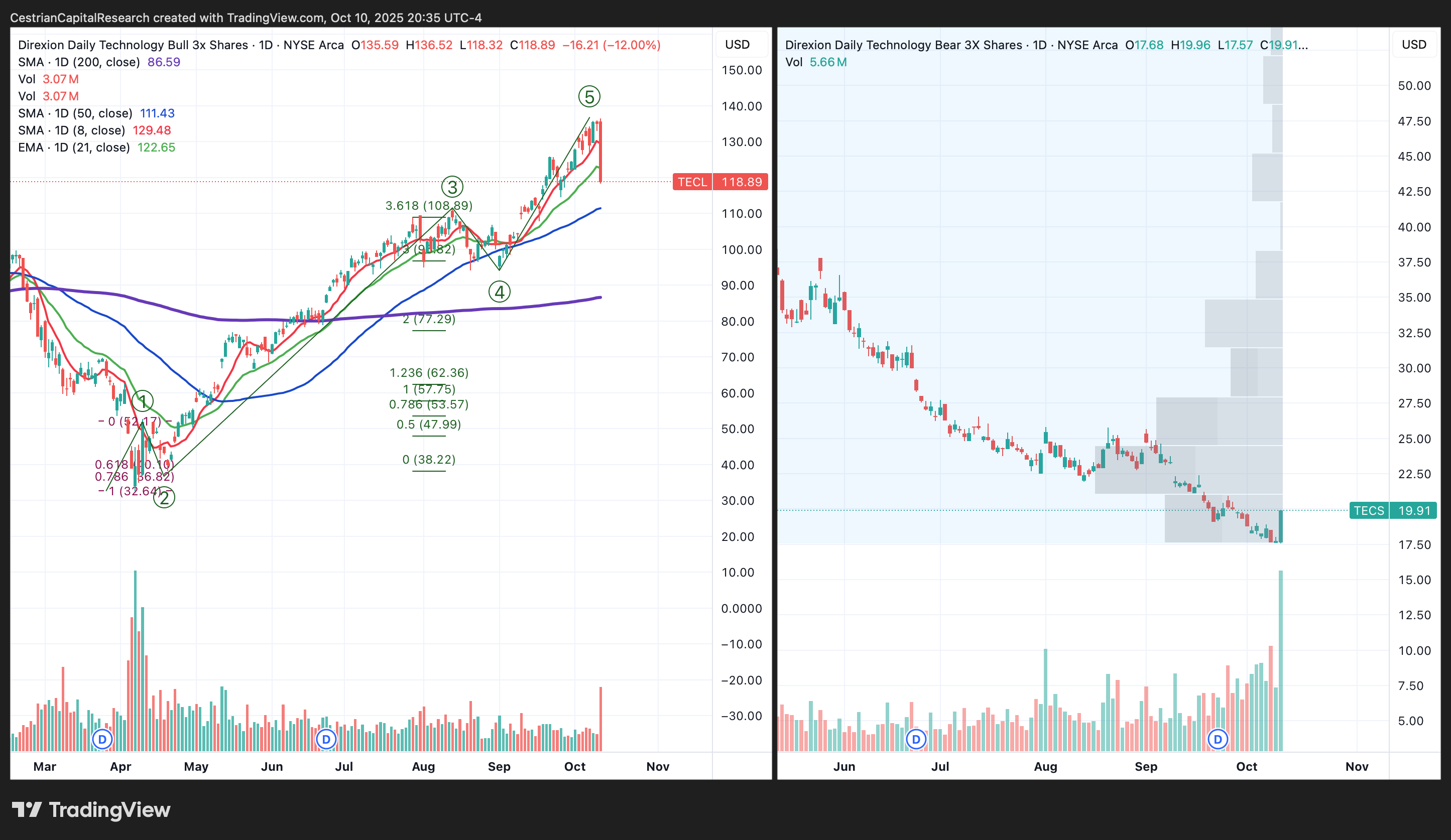 Note - TECL and its inverse TECS tend to be illiquid outside RTH with relatively wide bid/ask spreads.