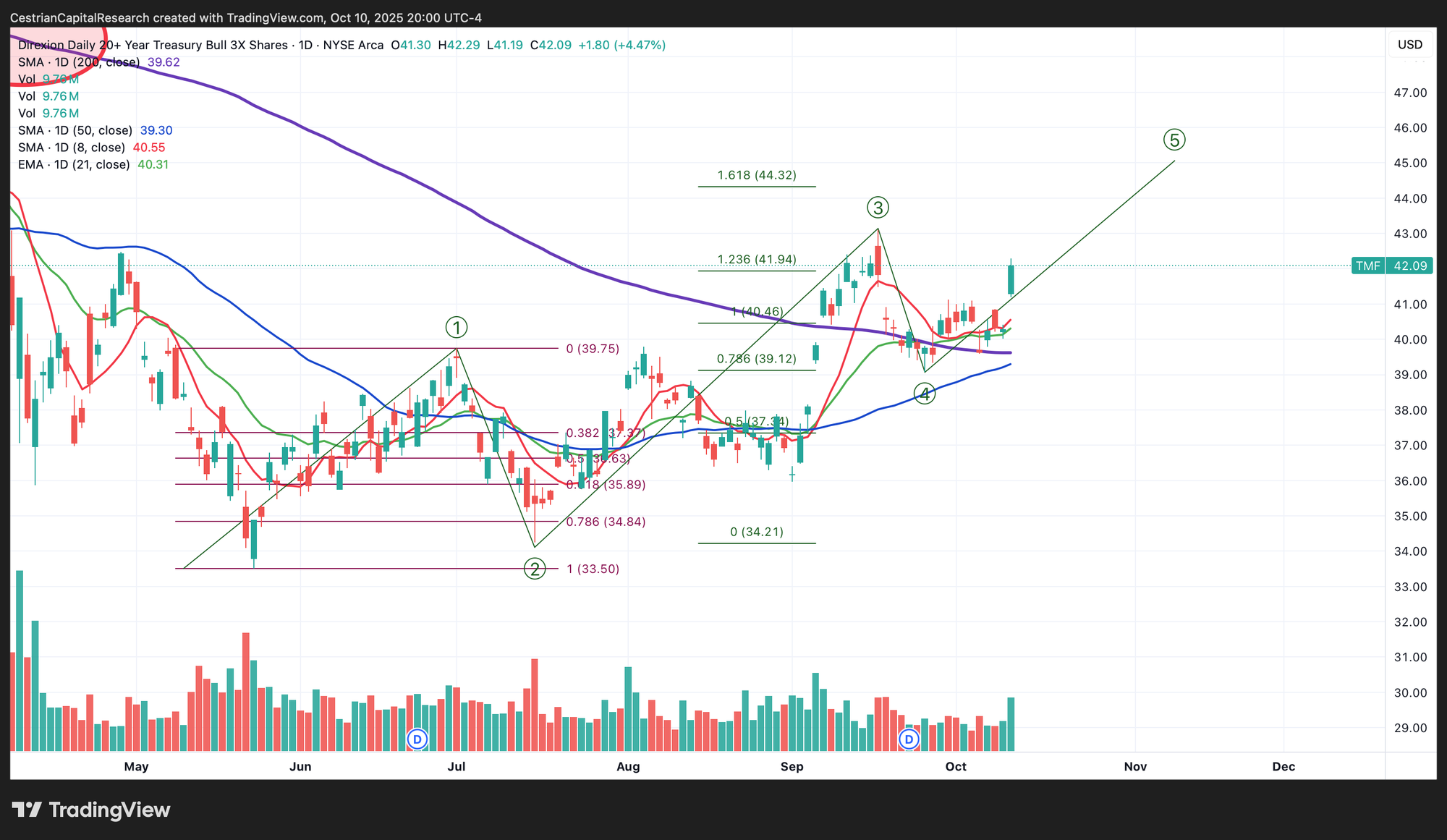 DISCLOSURE - Cestrian Capital Research, Inc staff personal accounts hold long positions in, inter alia, TQQQ, SQQQ, IUSA, SOXL, SOXS, SMH, TLT, DTLA, ETHA, XLK; long December TQQQ, QQQ and SPY puts.