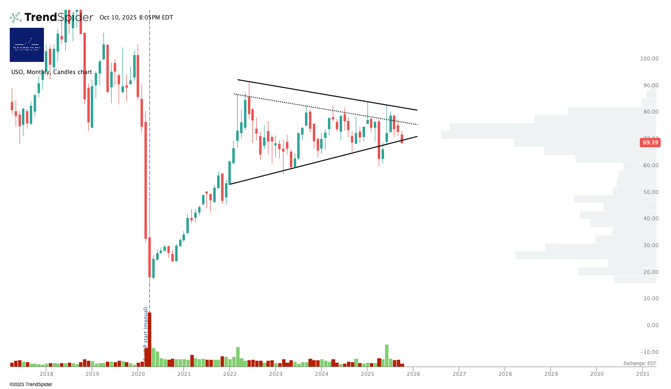 Well, I’m glad I waited to take a long oil position! Specifically I am waiting for USO to get up and over its 21-day EMA; so far no dice. Oil futures were hit hard today.