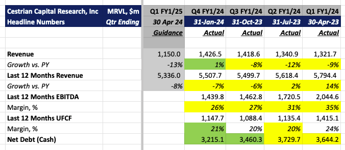 Marvell Technology, Inc ($MRVL) reported its Q4 of FY1/24 last week. The company put in a solid quarter that might, just might, mark a turnaround in its recent fortunes.