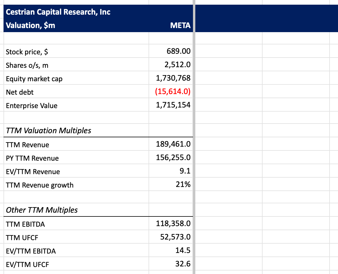DISCLOSURE: Cestrian Capital Research, Inc staff personal accounts hold no position(s) in $META save via index ETFs.