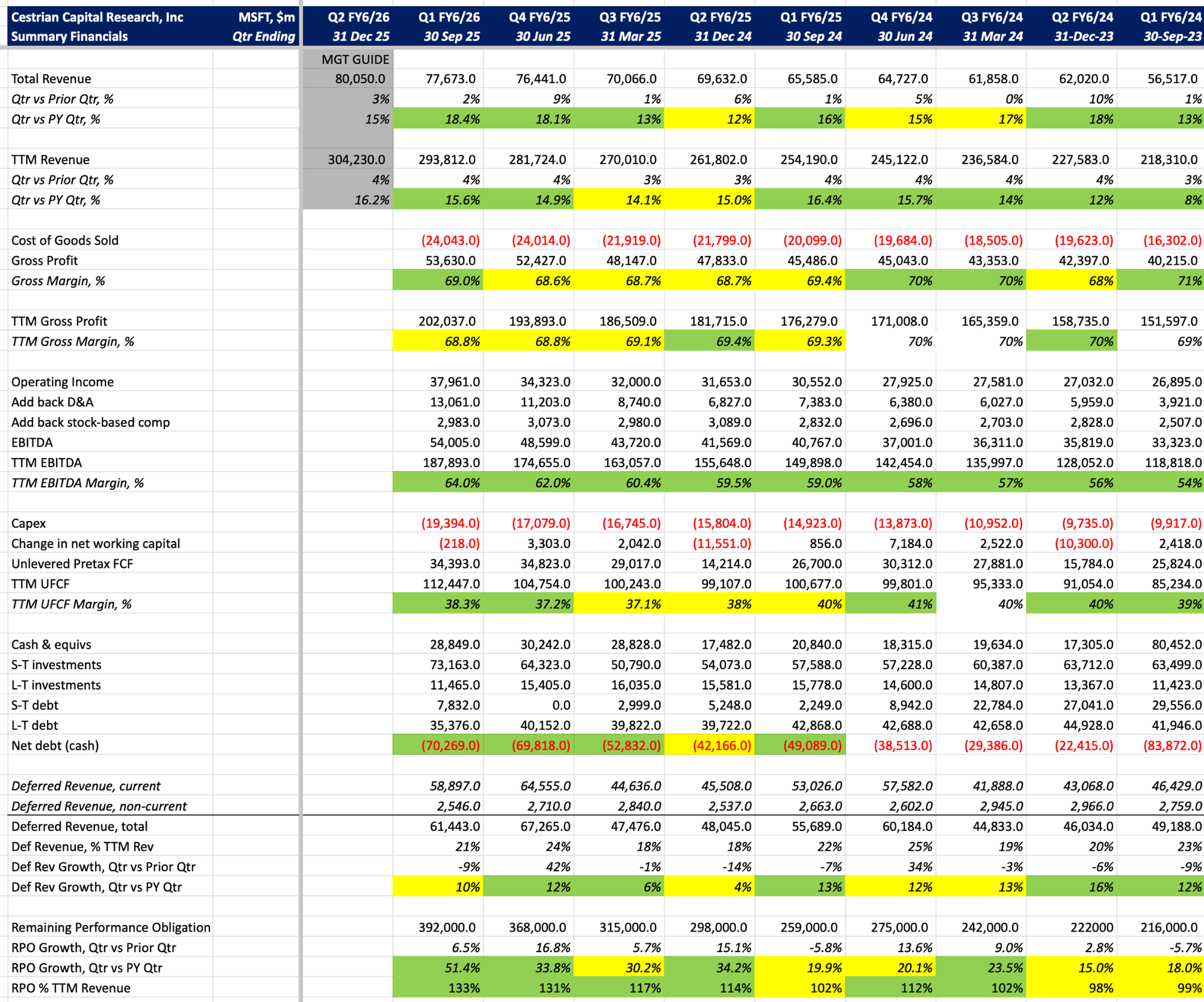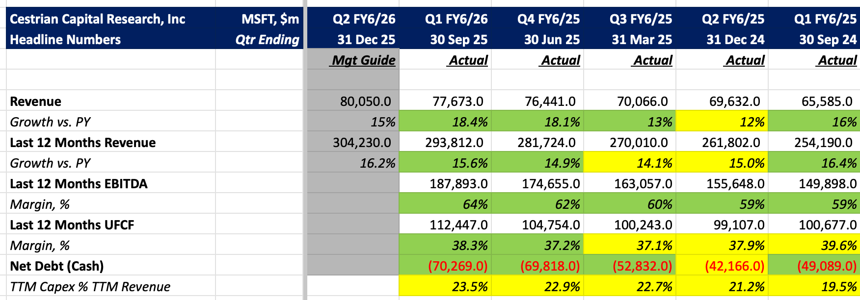 This company is in great shape. The stock will do what the stock does - when the market rolls over so too will $MSFT - but the actual business? Incredibly strong and, I believe, well managed vs. its hyperscaler peers.