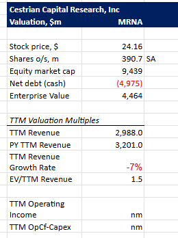 DISCLOSURE: Cestrian Capital Research, Inc staff personal accounts hold long position(s) in $MRNA