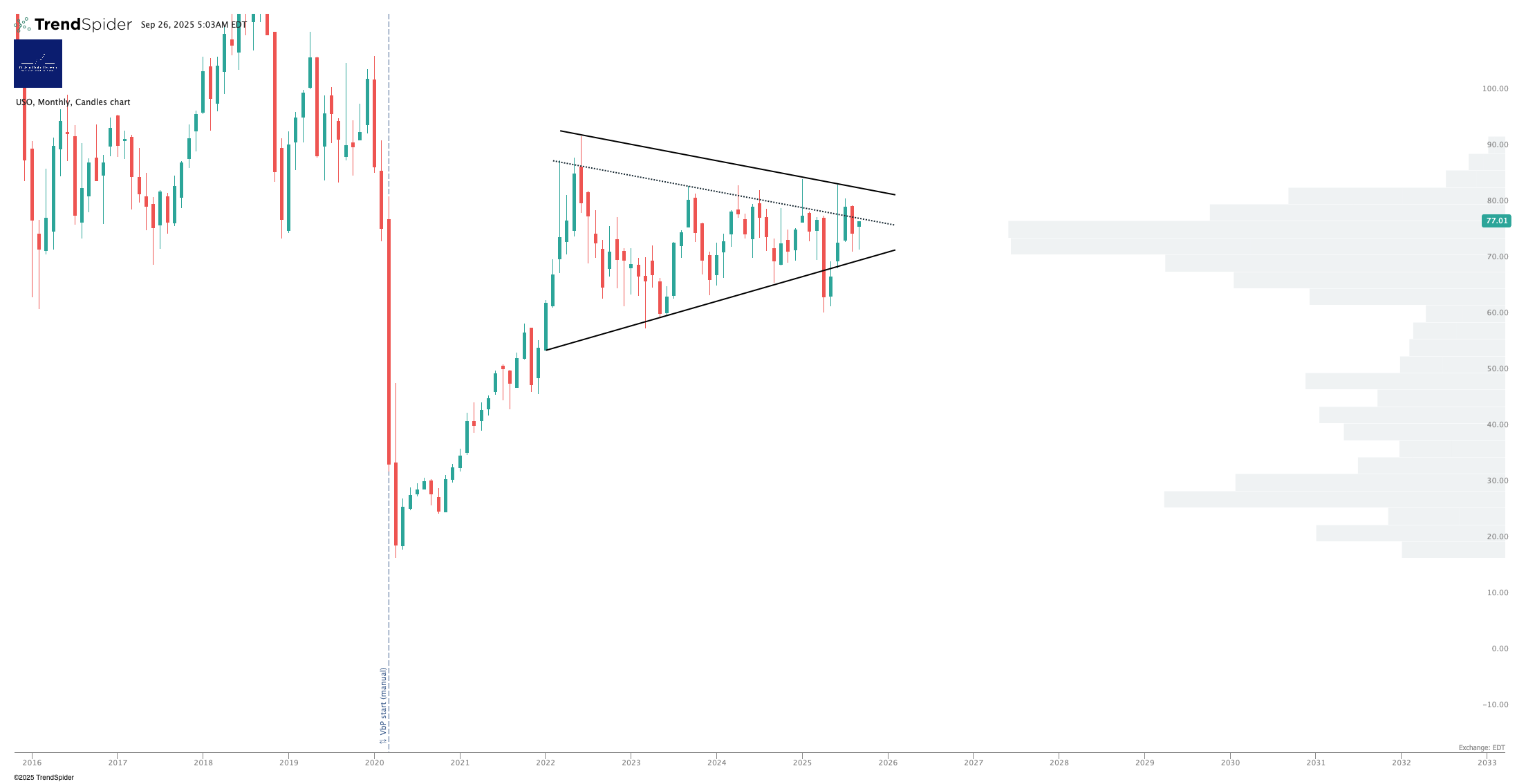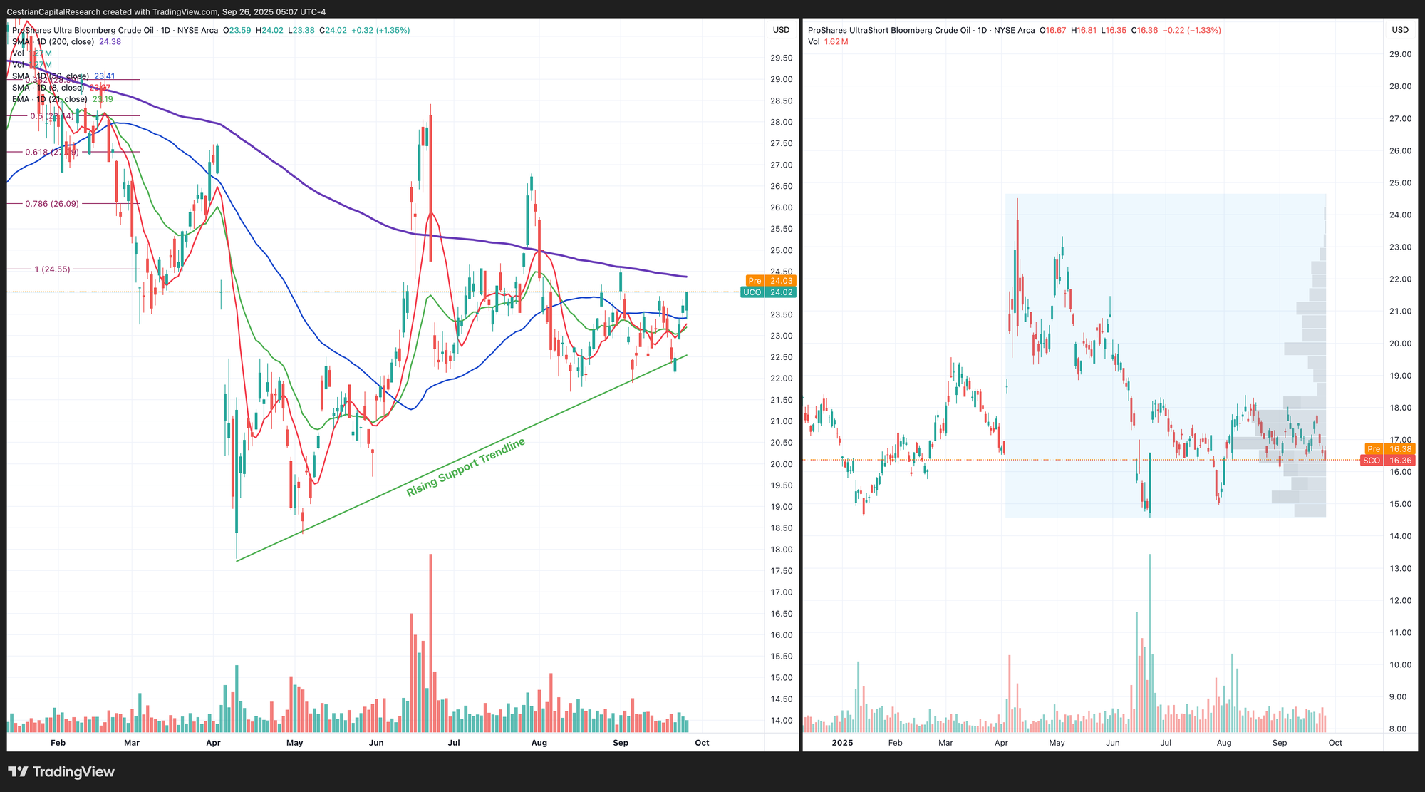 UCO is approaching its 200-day, which is likely to act as resistance.