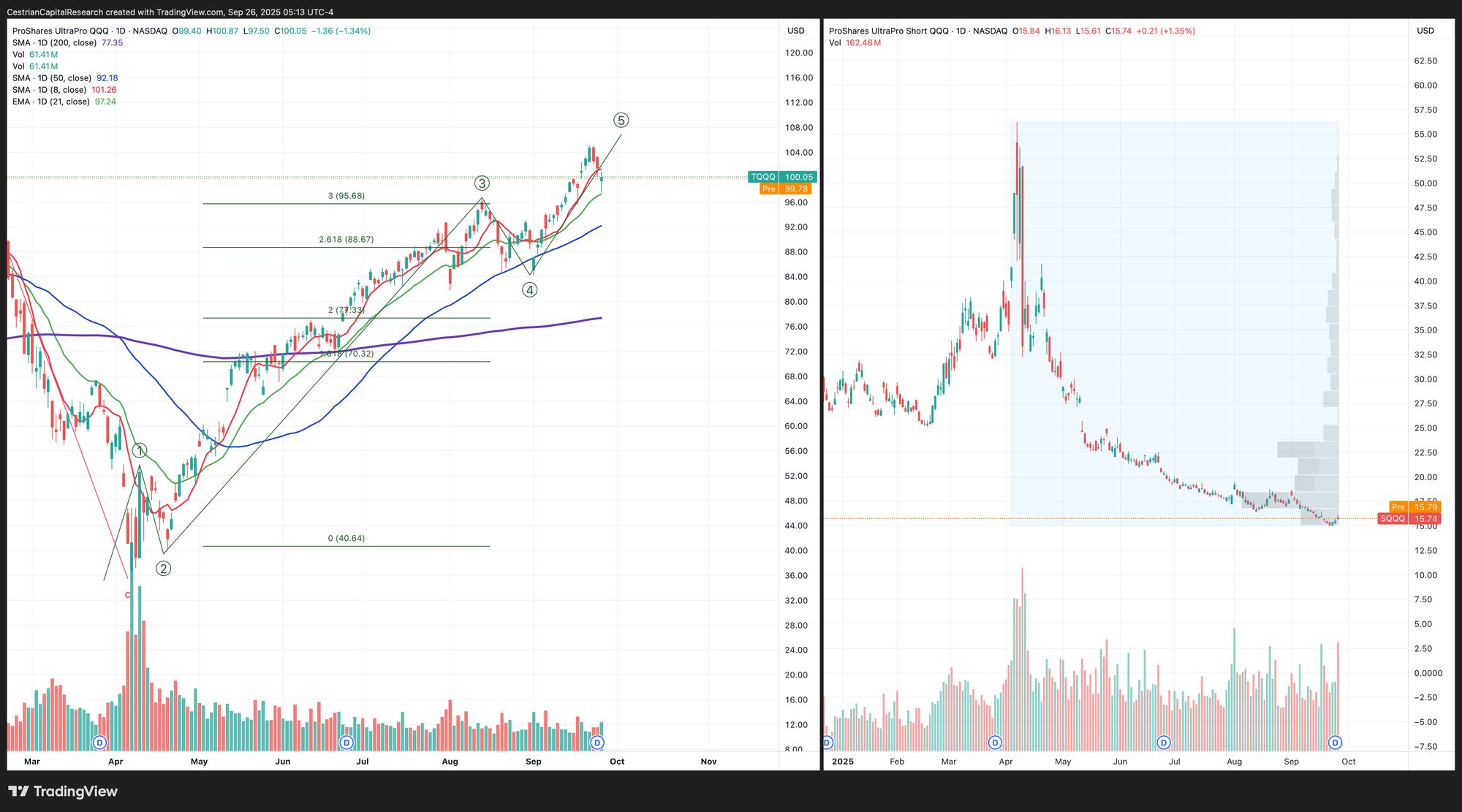 DISCLOSURE - Cestrian Capital Research, Inc staff personal accounts hold long positions in, inter alia, TQQQ, SQQQ, IUSA, SOXL, SOXS, TLT, DTLA, ETHE, ETHA; long December TQQQ, QQQ and SPY puts.