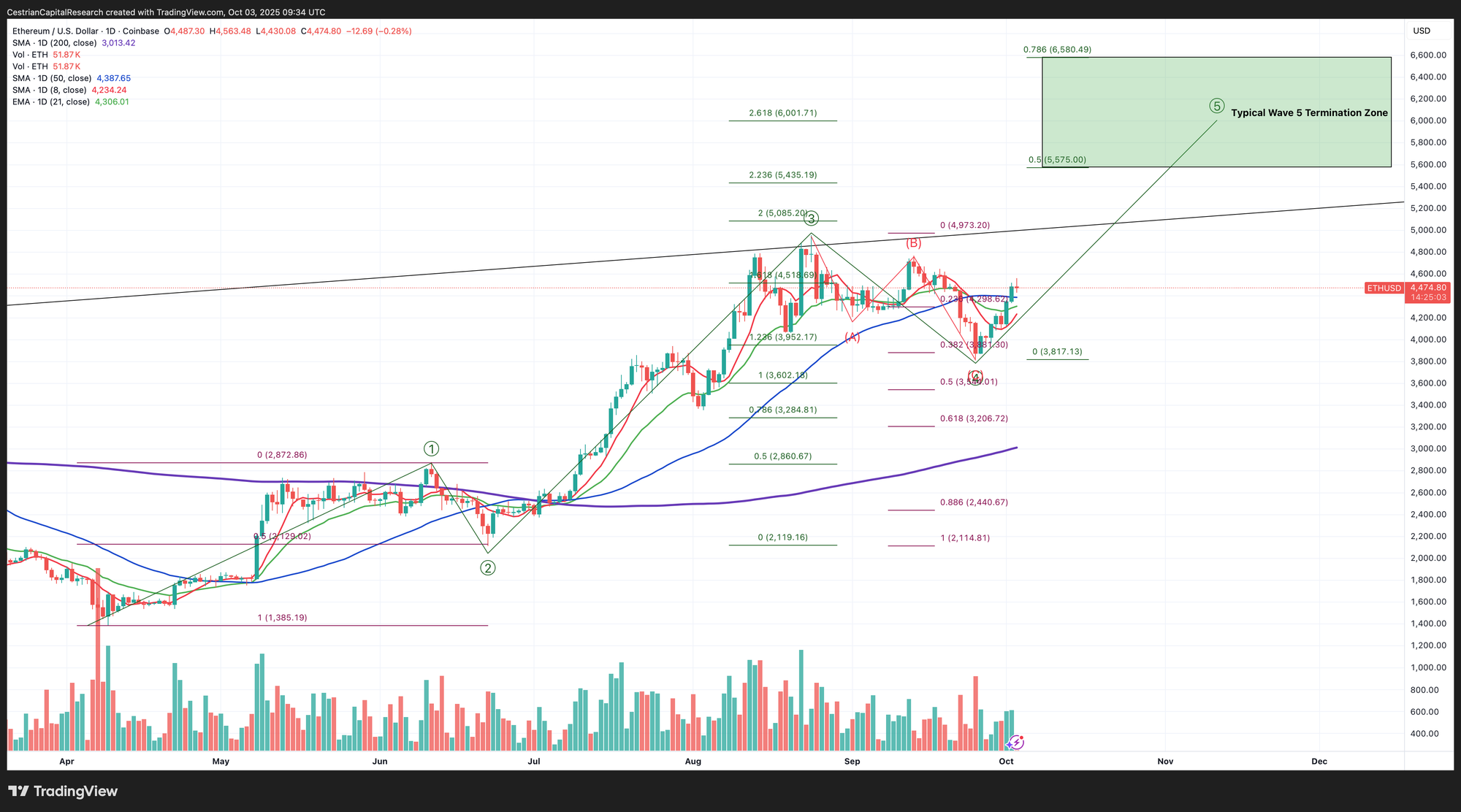 Up and over the key moving averages and sights set on $5500-6500 I think.