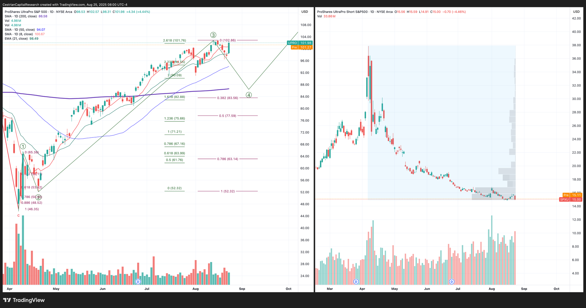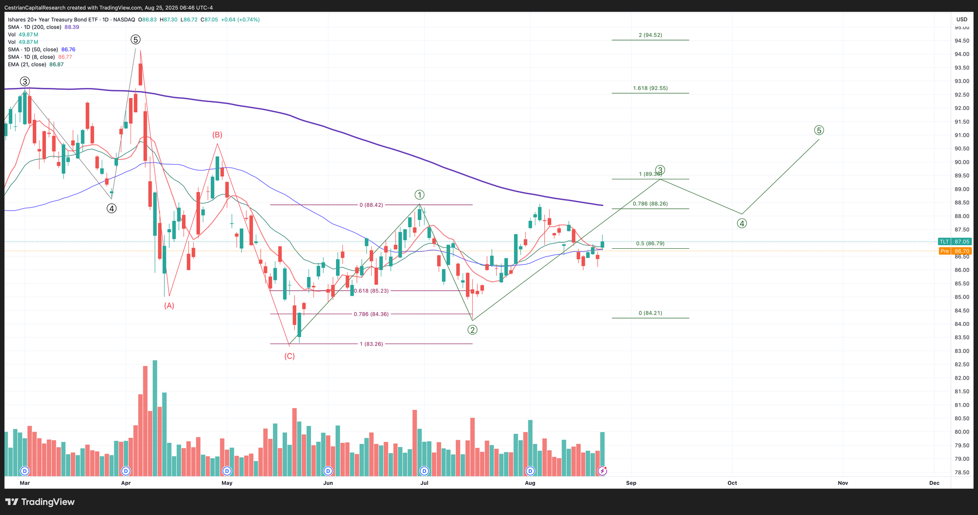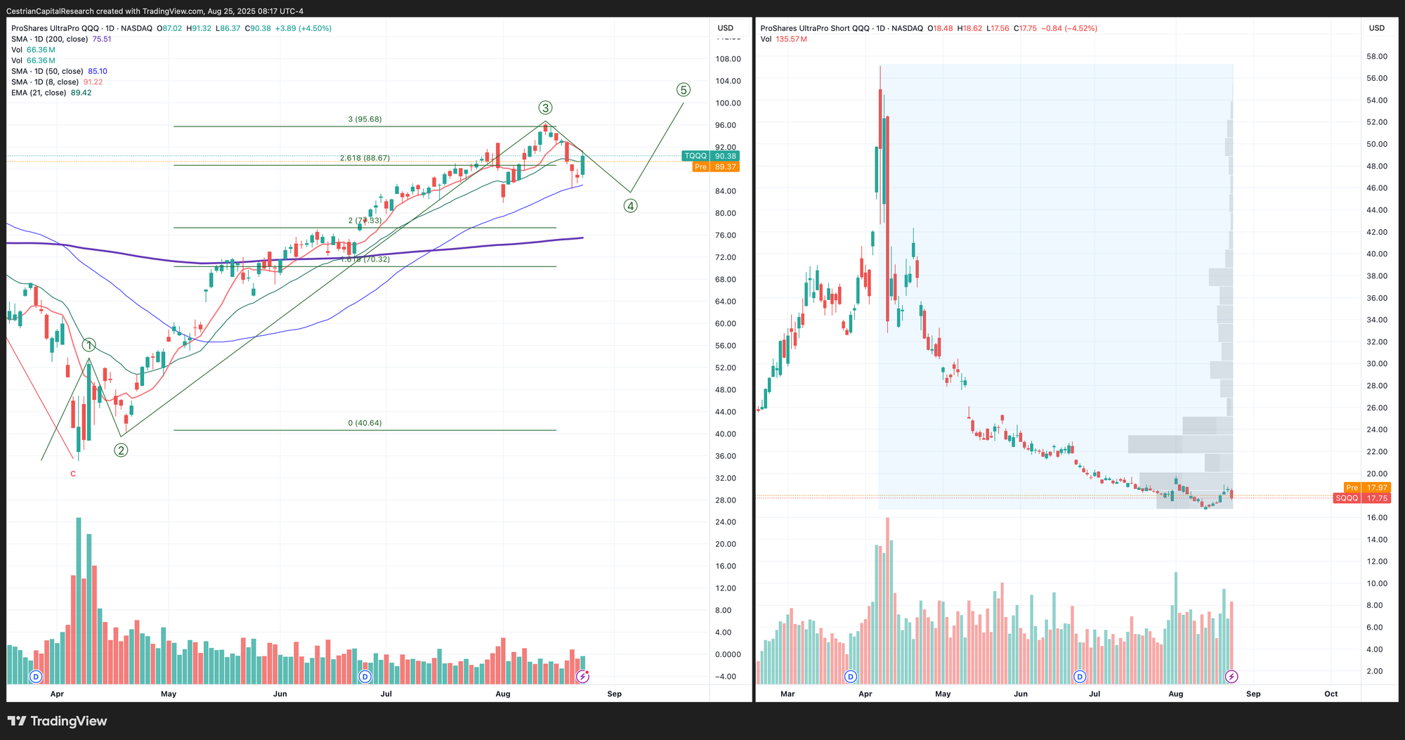 DISCLOSURE - Cestrian Capital Research, Inc staff personal accounts hold long positions in, inter alia, TQQQ, SQQQ, IUSA, SOXL, SOXS, SMH, TLT, DTLA, ETHE, ETHA; long September TQQQ, QQQ and SPY puts.