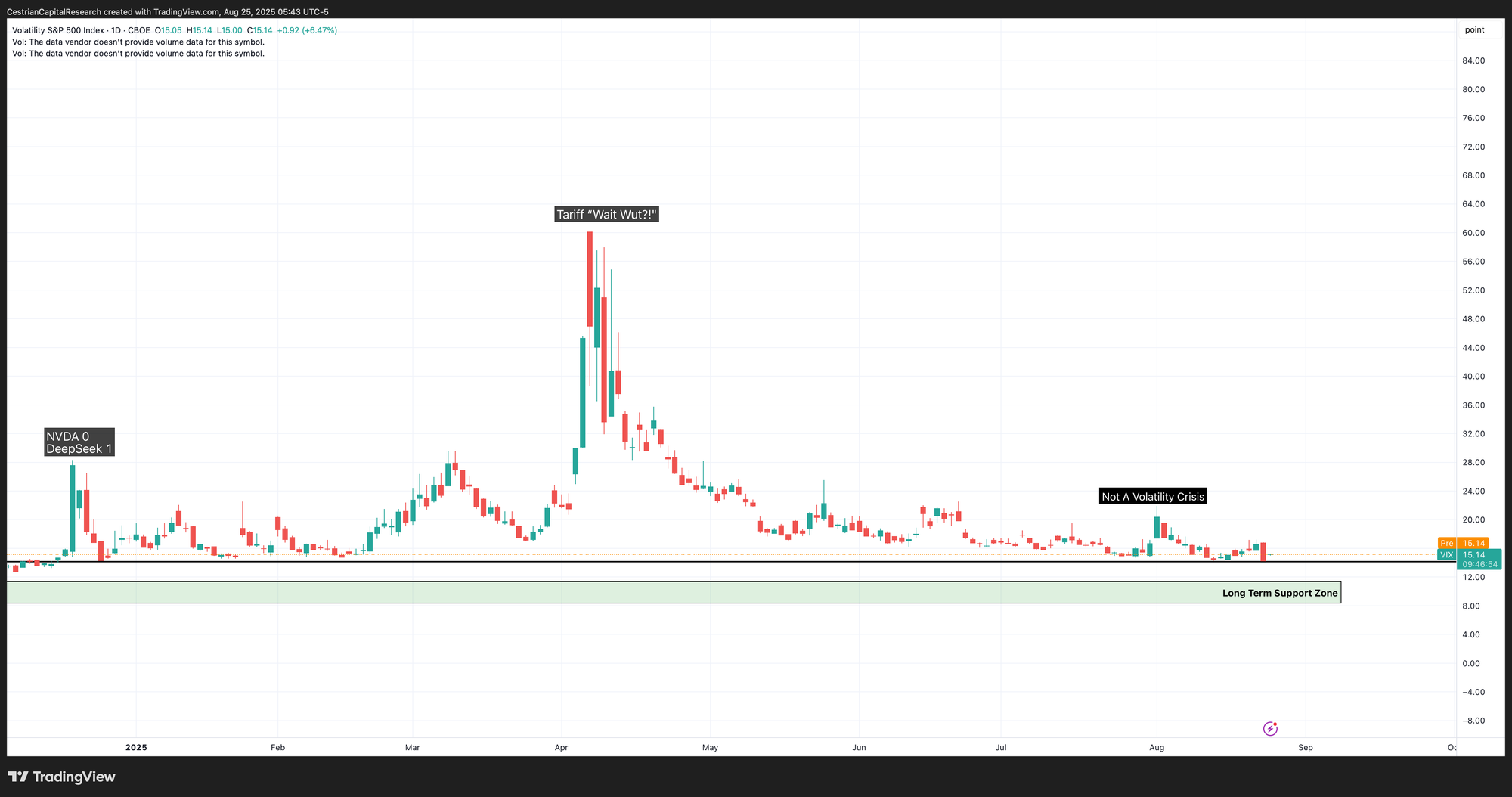 And then a bunch of post-hoc justification about how the Fed had abandoned its inflation targets, there were going to be 25 rate cuts in September alone and by October the Federal Government would require you to pay it in Bitcoin whilst at the same time lending it your US Dollars. Or something.