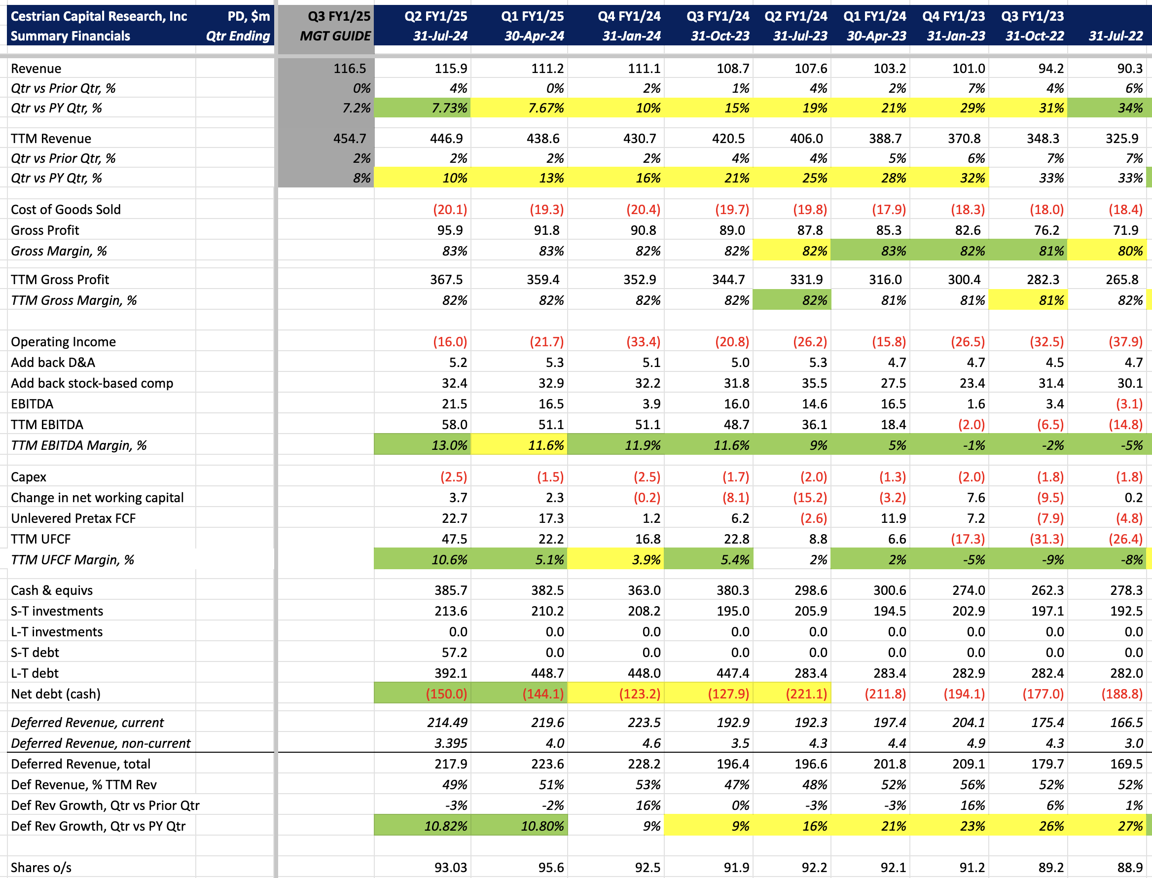 This will be our last earnings note on PagerDuty ($PD). No paywall as a result. This is a perfectly solid niche enterprise software business that does what us old folks would have called 'alerts' back when enterprise software hadn't been taught how to pretend it was cool. The stock was a 2021 darling, since when it has plummeted and keeps trying to dig down into the basement. Growth is declining, but the guide for next quarter is calling for that decline to arrest - good if it happens. EBITDA and cashflow margins are climbing nicely. The balance sheet is fine, not awash with cash, but fine.