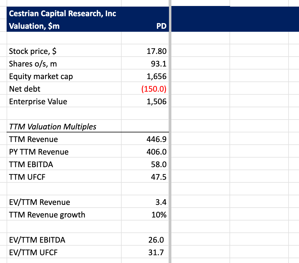 DISCLOSURE - Cestrian Capital Research, Inc staff personal accounts hold no positions in $PD.