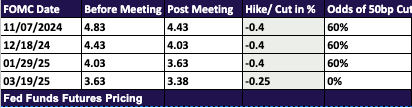 Going into last week's FOMC, the market widely debated whether the Fed would (not should) cut by 25bp or 50bp.