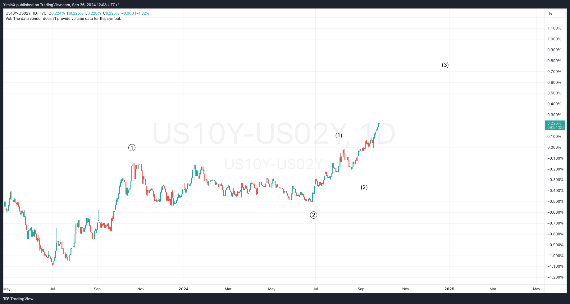 The US2Y vs US10Y spread has been on an upward swing, climbing by 20bp since the FOMC.