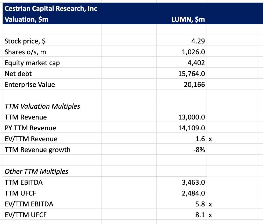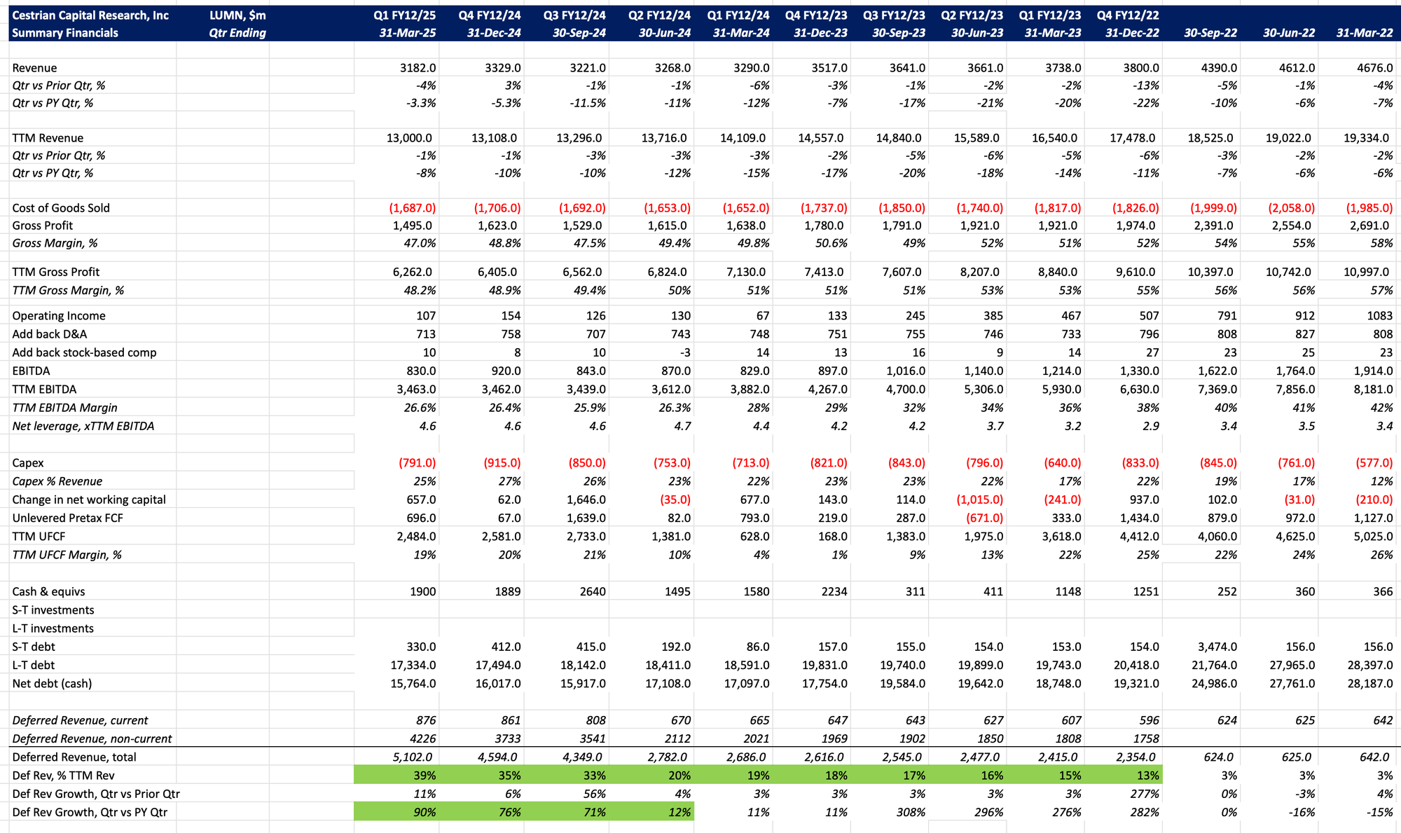 Lumen Technologies is a telco insofar as it has large-scale network assets to manage, but it really doesn’t look like telecom as we know it. It doesn’t sell cellphone plans, doesn't know what a family calling bundle is, and probably doesn’t have a circuit switch (which interestingly my autocorrect tried to change to ‘cirrhosis’ which is about right) anywhere in its network.