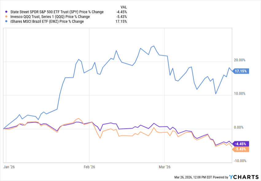 Latin American country ETFs have also been on a tear. Here’s Brazil, $EWZ.