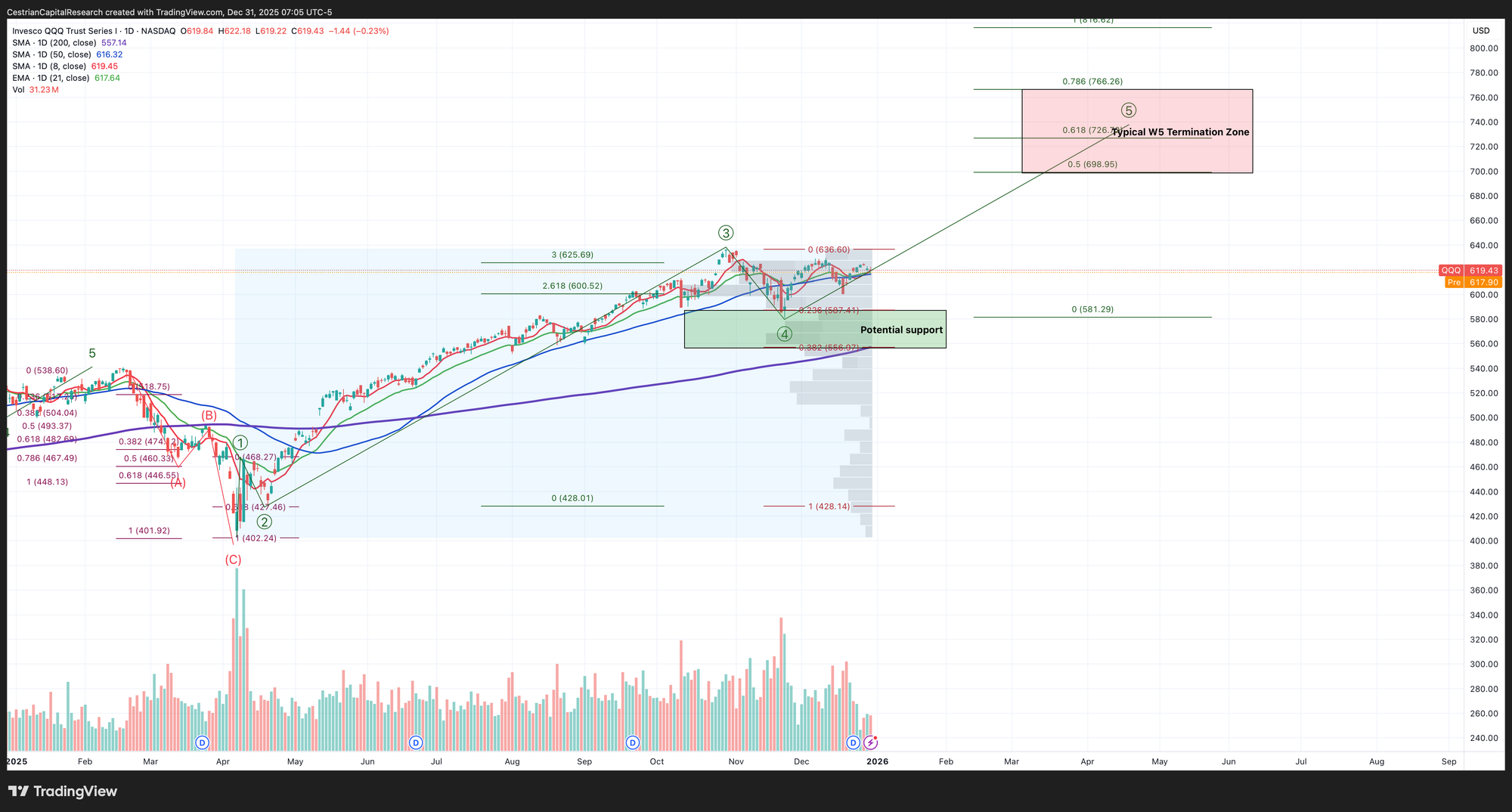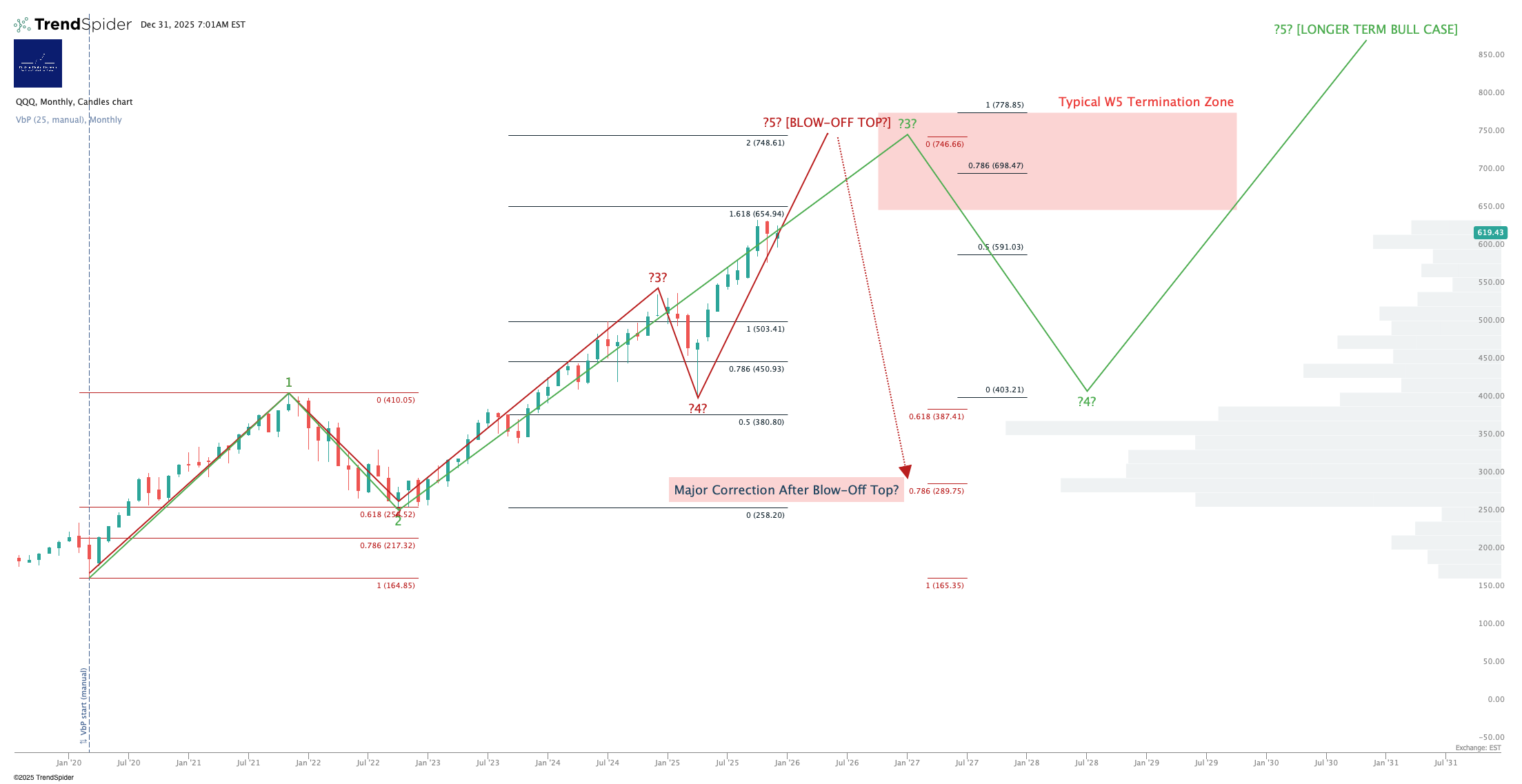If you look at that QQQ chart above, the longer-term one, here’s a way to work out whether we’re in a Wave 5 or a Wave 3 right now. It matters - because if now is a Wave 5 then what comes next will be a brutal bear market. But if it’s a Wave 3 then we’ll see a bearish correction before new highs in a year or two. Not a call to get wrong.