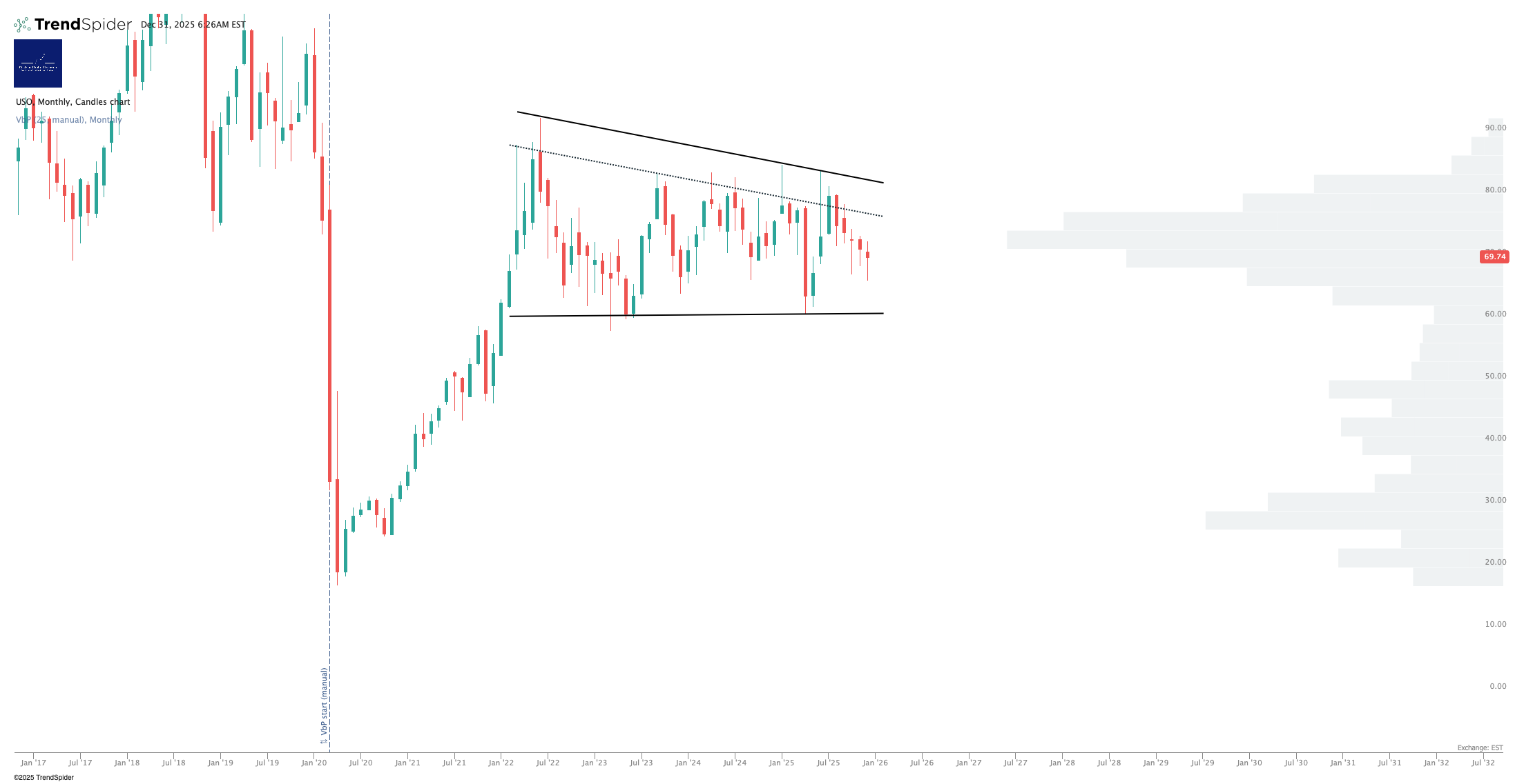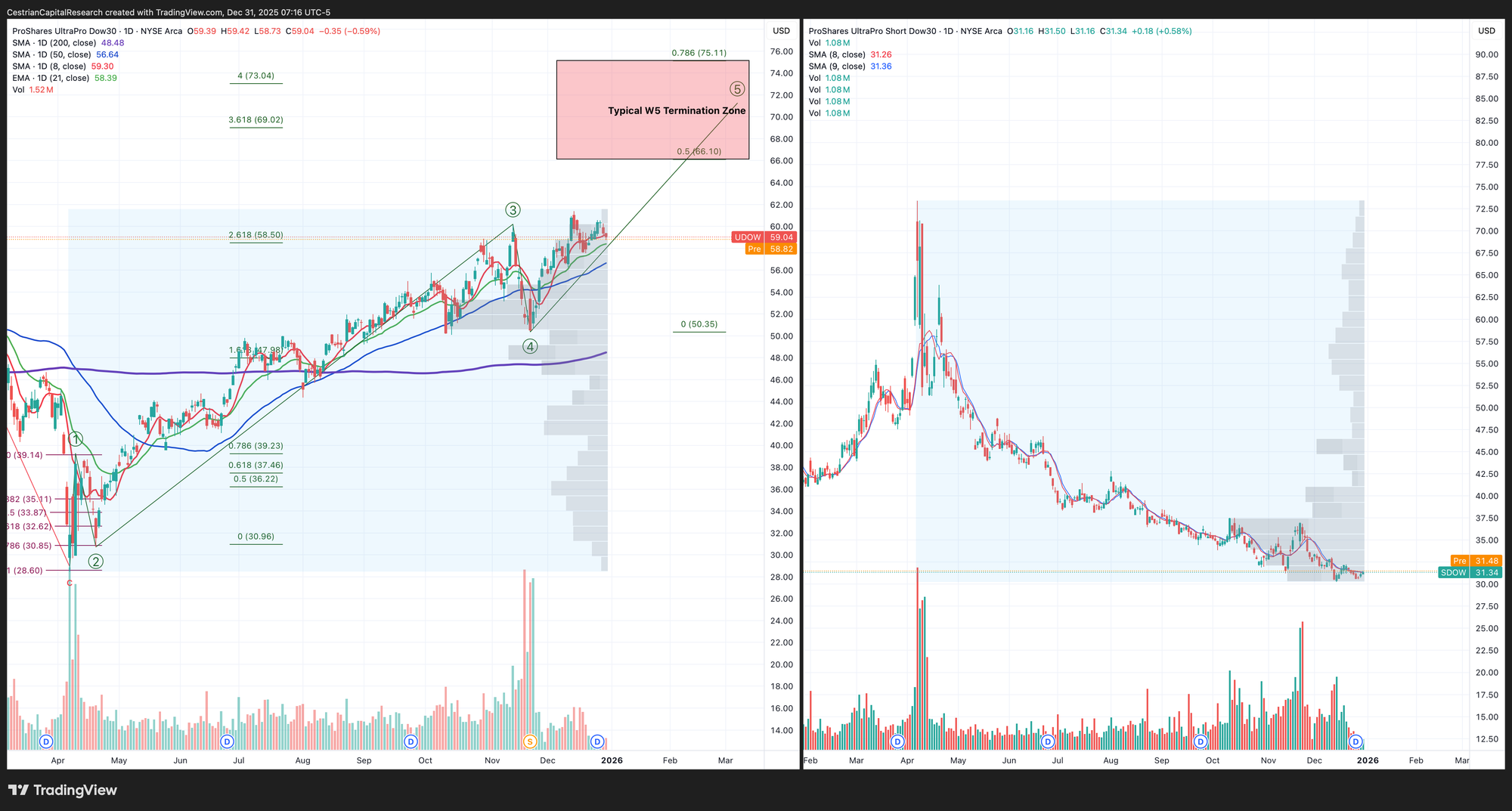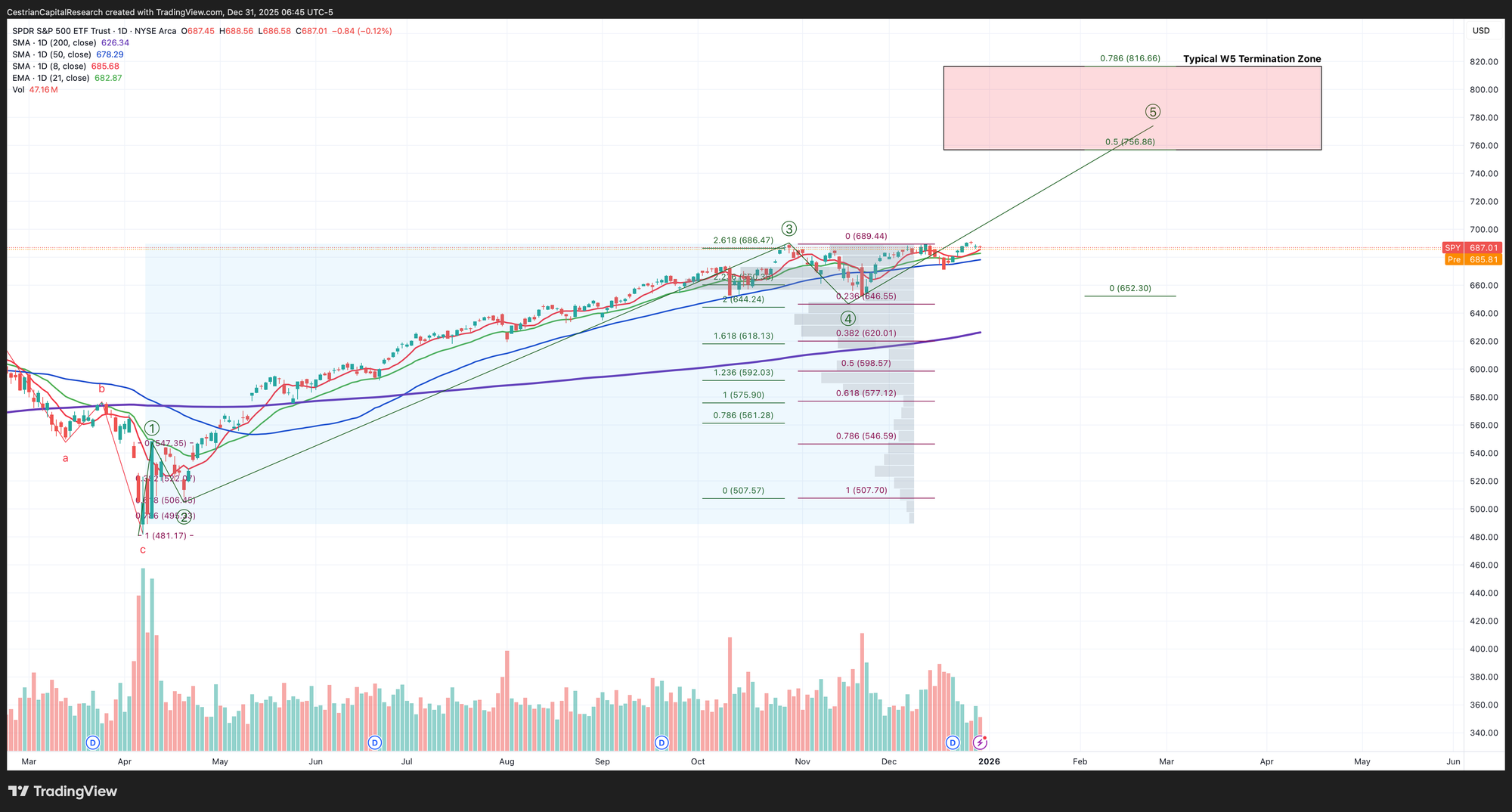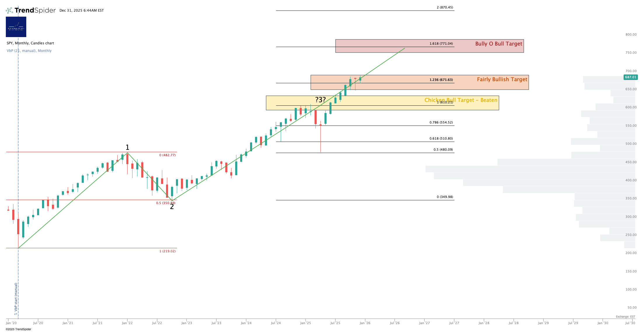 TO REPEAT: Apparently all of Wall Street is now bullish SPY for 2026. I am not sure whether to be heartened or afraid!! This chart continues to look bullish medium term to me. I stand by the Bully O’ Bull target.