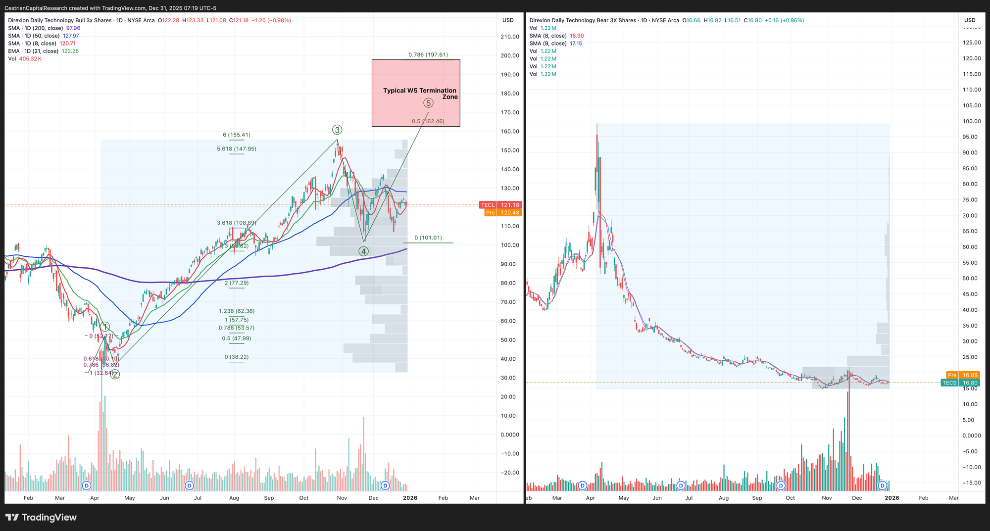 Note - TECL and its inverse TECS tend to be illiquid outside RTH with relatively wide bid/ask spreads.