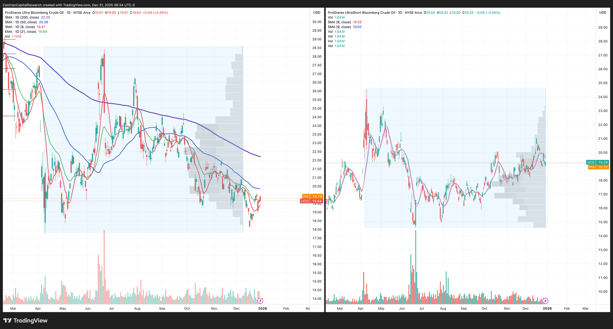 UCO holding over the 8-day SMA and the 21-day EMA.