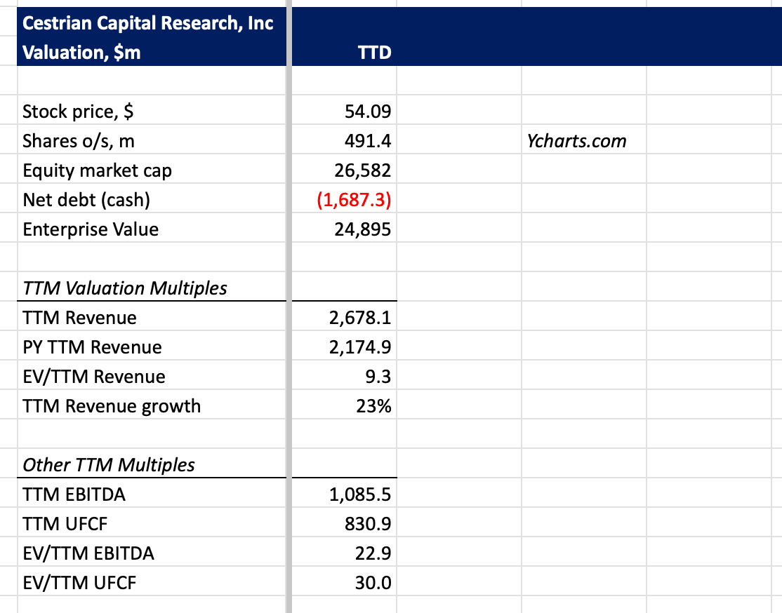 Personally I think $TTD has the value it does because of founder Jeff Green, who is a silent-killer CEO in my view. It’s possible the company proves to have underlying financial problems or some other murky reason for the CFO departing, or it could be the normal reasons that CFOs leave. Either (1) got offered a better job or (2) a difference of opinion with the CEO that was resolved by one of them leaving, and it was never going to be the CEO. I’ve followed TTD for a long time and nothing in the cashflows or balance sheets have ever looked fishy to me, but I am not their auditor, go off of the SEC prints and only dig deep if something does look fishy. So again - anything can happen, I’m not saying it won't. But since maybe 2018 the numbers have always looked fairly clean to me. Until proven otherwise then, I’m not concerned about the CFO departure.