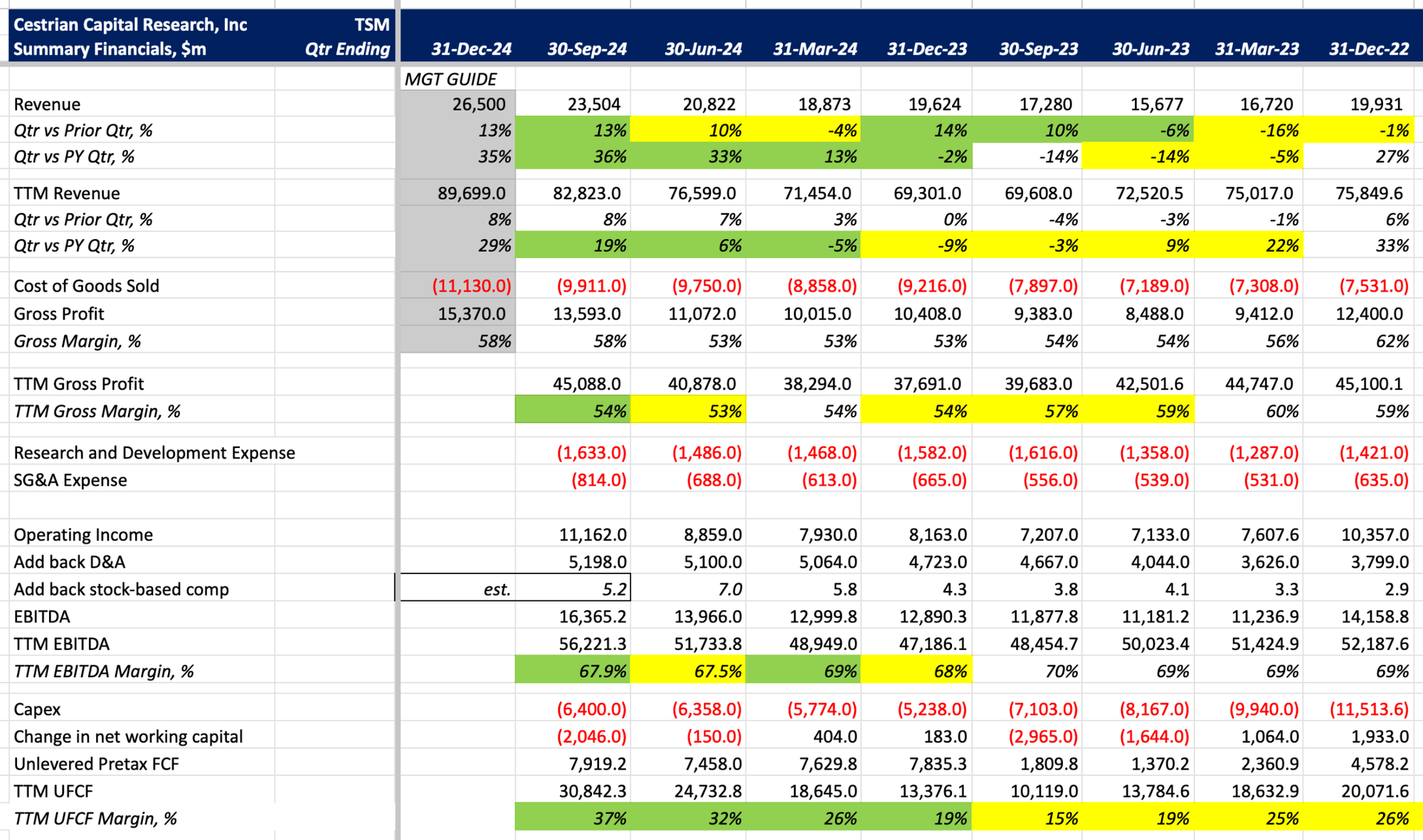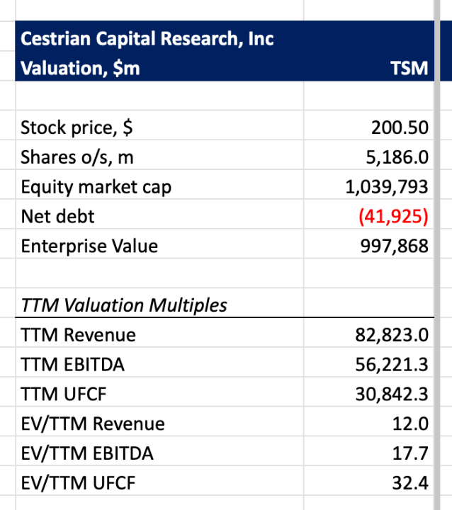 For what it's worth, let’s run through TSM numbers, valuation analysis, the stock chart as we see it, and our ratings.