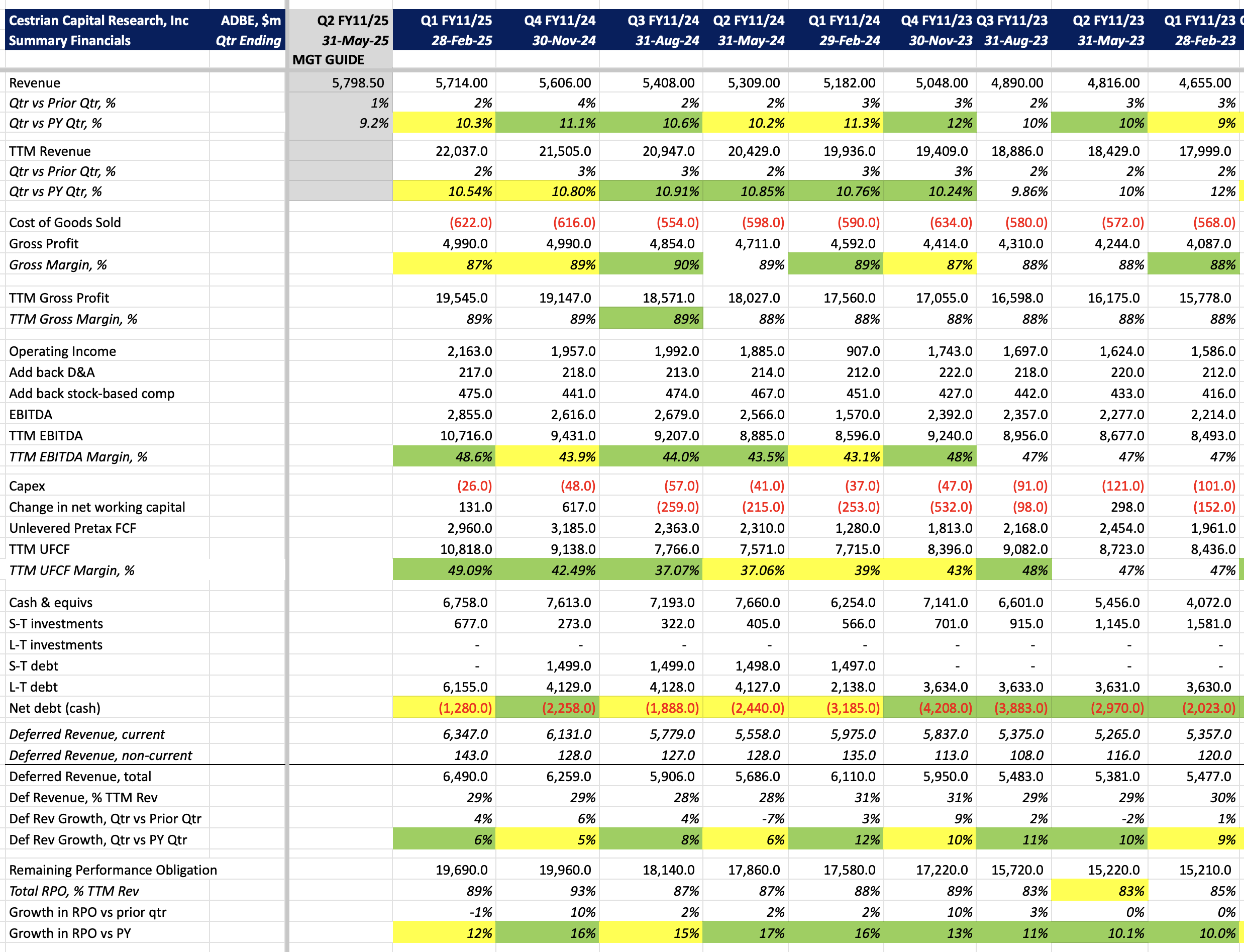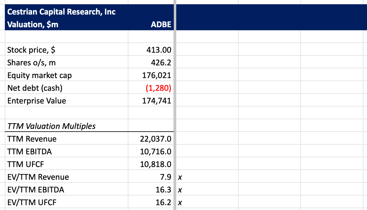 I am not sure that this opinion shows up in the numbers yet. I can point to slowing revenue growth and in particular to slowing order book growth (RPO dropped vs. the prior quarter for the first time in three years - that’s not a good look). But this is just one quarter, so let’s see how this plays out. Want to know the bull case for Adobe surviving this existential threat? It’s that Adobe has been under serial existential threat for, oh, about 40 years since its establishment in 1982 as a printer software business. And whilst CEOs have come and gone, the commitment to re-invention has remained. This is why, of course, the company tried to buy Figma for some $20bn (or about 1 Zillion Times Revenues) last year - only to be nixed by the FTC/DOJ. The deal may not have progressed but what it tells you is that the company is well aware of its challenges and is happy to use a capital-bazooka to fix the problems. (The exact opposite of the proposed $CRM / $INFA deal which in my opinion is more like the Grandpas’ Get-Together At The Old Folks Club).